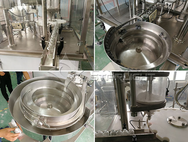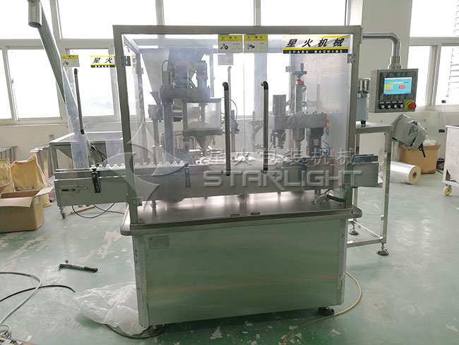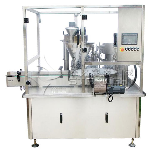 小瓶粉劑灌裝壓蓋生產線整機設計合理,更換包裝品種、清理都極為方便。 包裝重量無級可調,故障報警提示。 采用PLC控制,抗干擾,工作穩定,自動完成灌裝充填、上蓋、旋蓋動作無需人工干預,廣泛用于食品、制藥、化工行業及科研領域。 1.本灌裝旋蓋一體機是集機、電、光、儀于一體,具有自動定量、自動灌裝、自動計量誤差、自動上蓋、自動旋蓋等功能 ![]() 小瓶粉劑灌裝壓蓋生產線適用于農藥、獸藥、預混料、添加劑、奶粉、淀粉、調味品、酶制劑、飼料、營養粉、洗衣粉、黑芝麻粉、咖啡粉、青霉素粉末、冰硼散、膠原蛋白、面粉、染料等粉末狀、粉劑狀、顆粒狀物料的高精度定量灌裝。